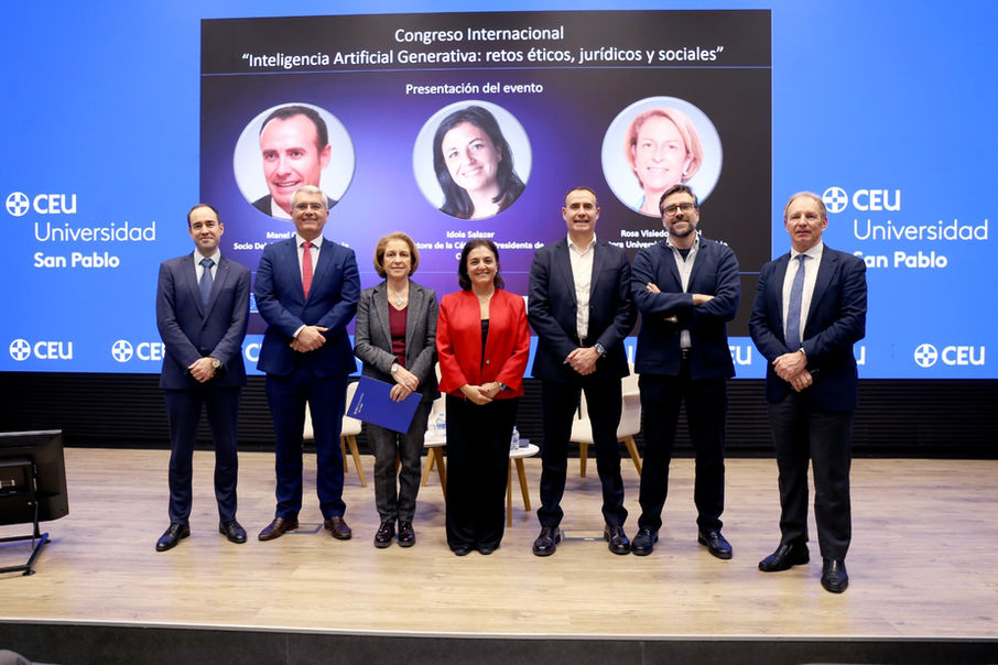 Reguladores, académicos y empresas hacen un llamamiento a reforzar los marcos éticos, regulatorios y sociales que acompañan al desarrollo acelerado de la inteligencia artificial generativa, al concluir en Madrid el Congreso Internacional “Inteligencia Artificial Generativa: retos éticos, jurídicos y sociales” Momento de la inauguración del congreso. De izquierda a derecha, David de Francisco Marcos, Subdirector de IA-Secretaria de Estado de Digitalización e IA; Lorenzo Cot